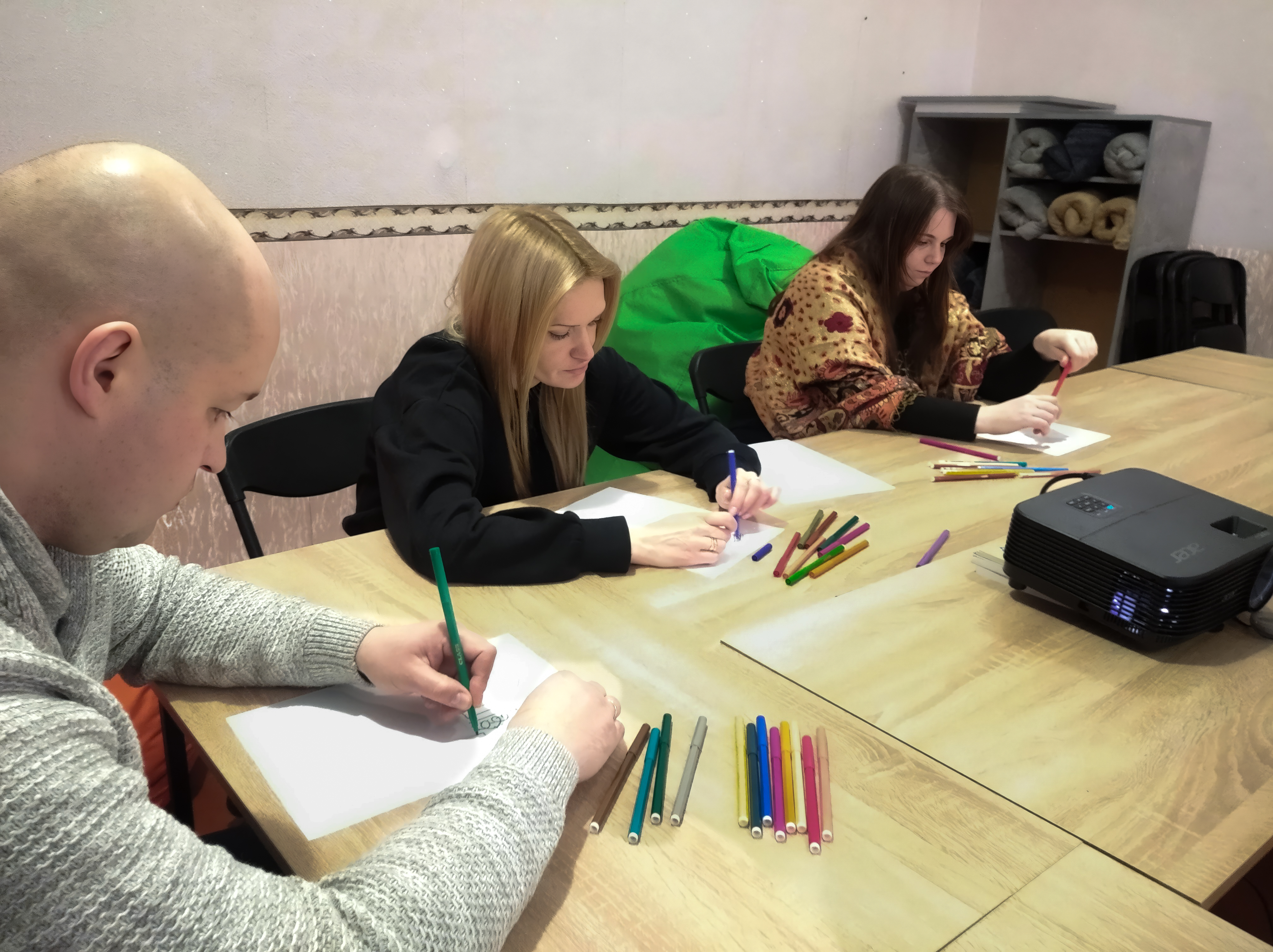 Студія психологічного відновлення та розвитку стала простором для живого спілкування, емоційної безпеки, ресурсних зустрічей та глибинної підтримки. Тут проводяться тренінги, індивідуальні консультації, була створена група підтримки протягом проєкту. Аудиторія учасників та учасниць була різною. Долучились батьки, які навчалися повертати контроль над складними ситуаціями, зміцнювати емоційний зв’язок із дітьми, формувати конструктивну комунікацію в родині. Педагоги практикували майндфулнес, вправи для стабілізації, розвитку усвідомленості та вміння створювати безпечний простір для учнів. Діти навчалися розпізнавати власні емоції та знижувати тривожність через арттерапію та інші практики. Особливо затребуваними стали індивідуальні консультації — люди зверталися не лише по «психологічну послугу», а за розумінням, співучастю і відчуттям того, що підтримка поруч.